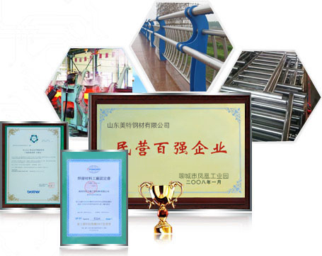 山東美特鋼材有限公司(15863566668)是常年專業(yè)從事生產(chǎn)、銷售內(nèi)外襯不銹鋼復(fù)合管,不銹鋼復(fù)合管護(hù)欄的廠家,公司擁有完整的不銹鋼及不銹鋼復(fù)合管生產(chǎn)線24條,以及各類金屬加工設(shè)備多套(數(shù)控等離子切割機(jī)、沖床、冼床等),公司還擁有獨(dú)立的鍍鋅和噴塑車間,良好地處理好鋼板表面效果。 公司優(yōu)勢:一、專業(yè)性強(qiáng)1.專業(yè)設(shè)計(jì)、制作和安裝不銹鋼復(fù)合管工程及金屬欄桿工程。集設(shè)計(jì)、生產(chǎn)、銷售與安裝為一體的完整體系。2.專業(yè)應(yīng)于:橋梁欄桿、市政建設(shè)、景觀護(hù)欄、體育器材、車輛機(jī)構(gòu)、紡織機(jī)械、醫(yī)療設(shè)備等二、質(zhì)量過硬1.通過IS09001:2000質(zhì)量體系認(rèn)證2. 獲得“全國質(zhì)量、服務(wù)、信譽(yù)AAAA及”企業(yè)稱號,“中國綠色環(huán)保建材產(chǎn)品”,“中國優(yōu)質(zhì)建材產(chǎn)品”…